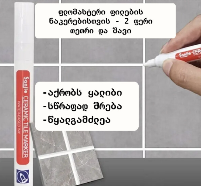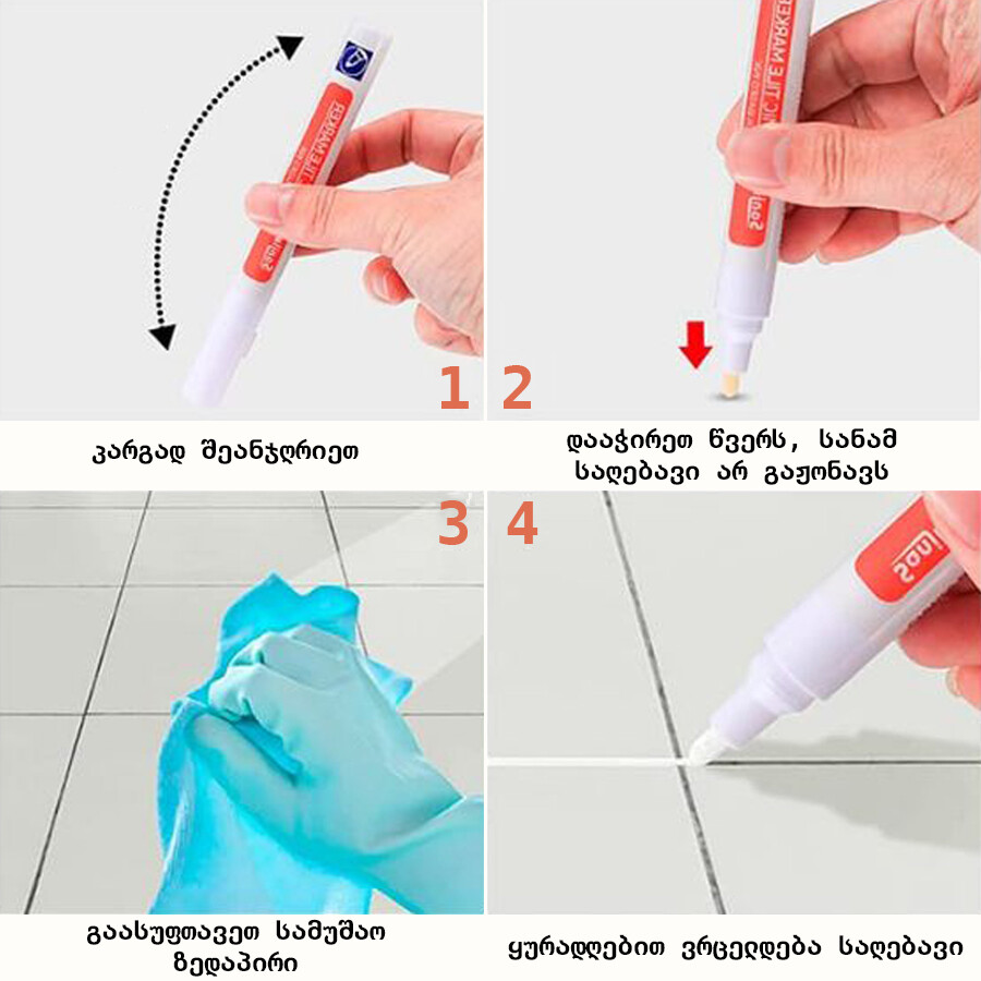 წყალგაუმტარი მარკერი იატაკისა და კედლის ფილების სახსრების შესაკეთებლად.